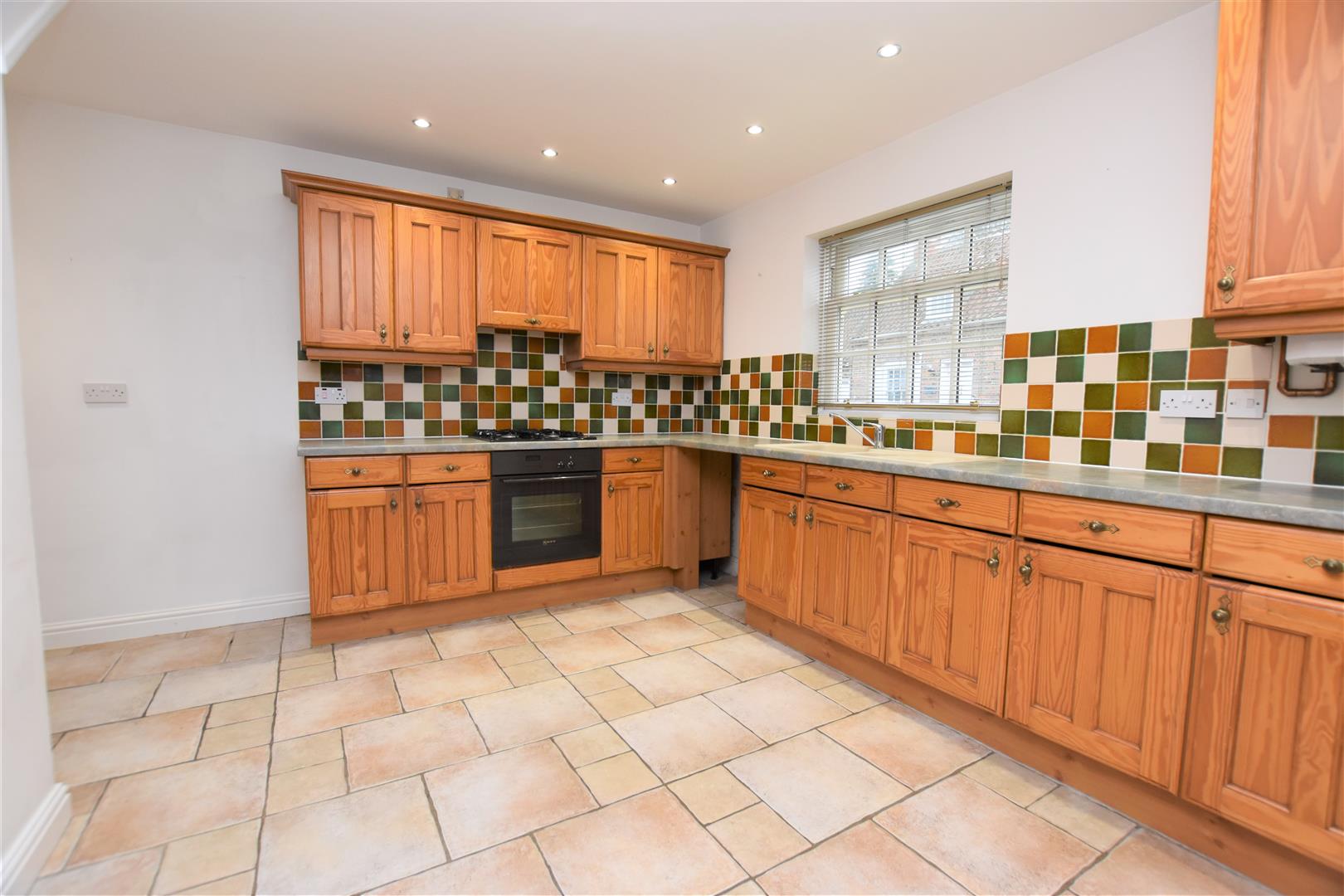 Fitted with a good range of base, wall and drawer units with contrasting work surfaces incorporating an one and half sink unit with mixer tap. Space for a fridge freezer, Plumbing for an automatic washing machine. Radiator. Gas hob and an electric oven. Extractor over. Spotlights. Cupboard housing a combi boiler. Under stairs cupboard. Tiled splash backs. Double glazed window to the front.