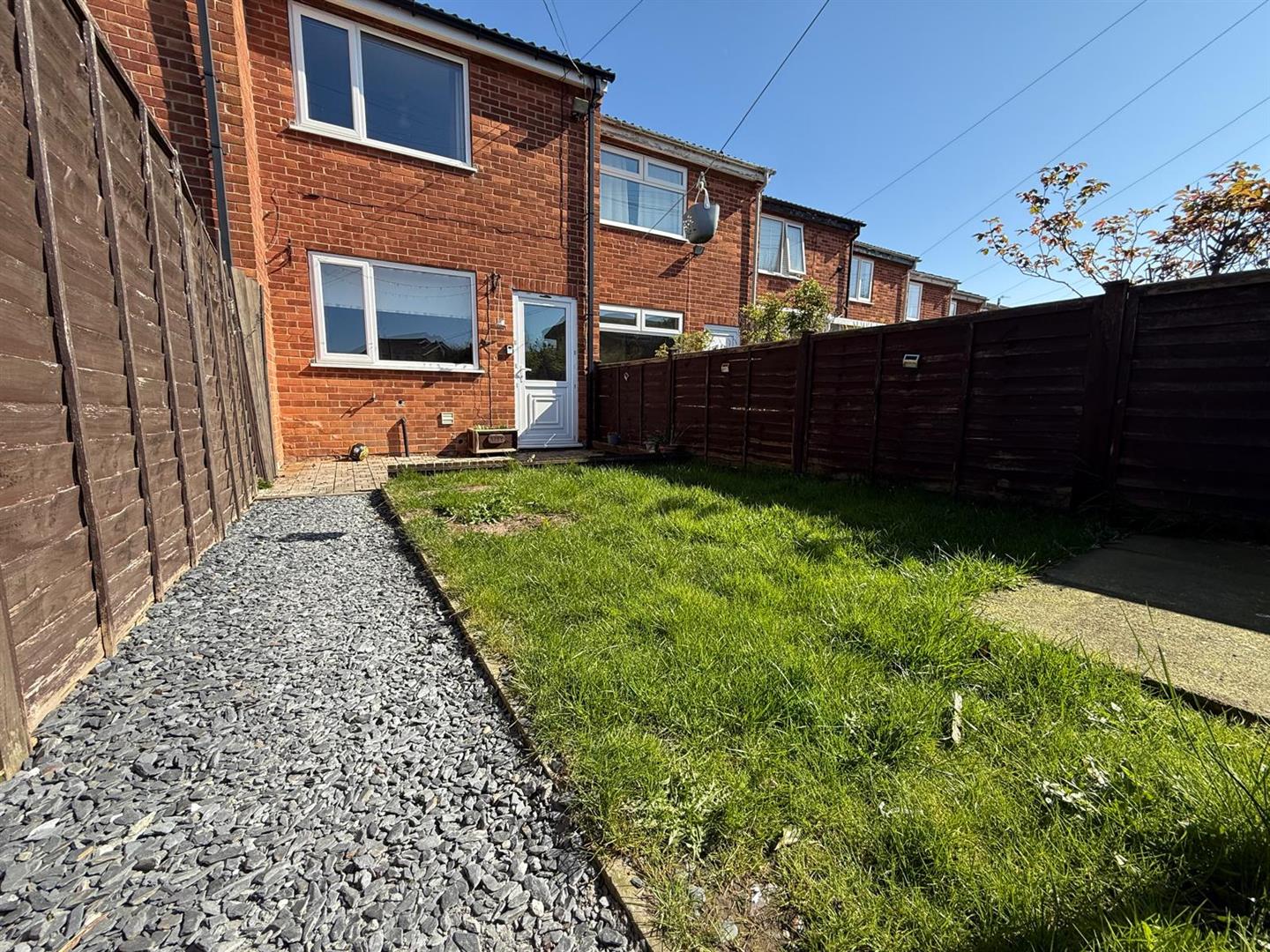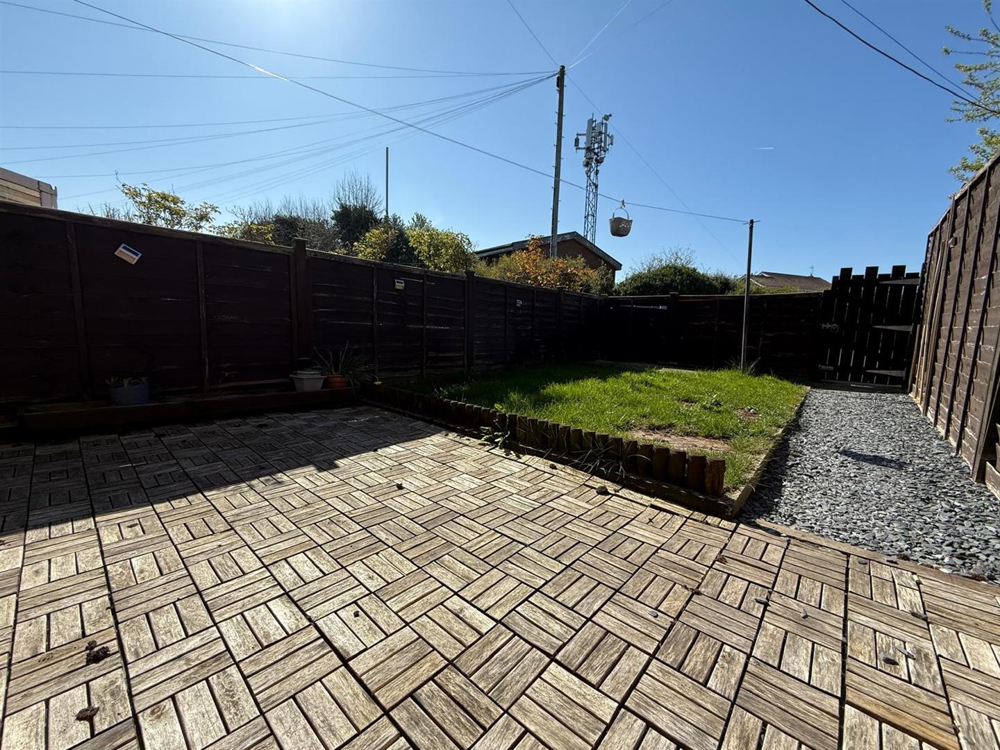 A great spacing composing of part laid to lawn, pebbled and decked. Rear access to communal parking.