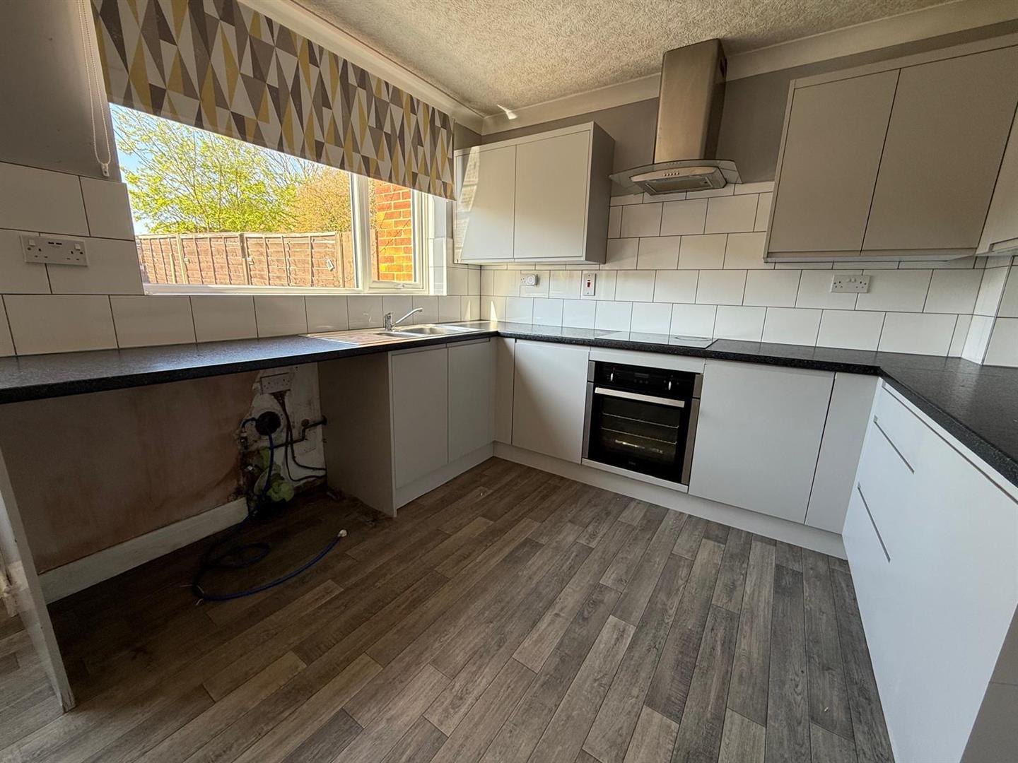 3.675m x 3.065m (12'0" x 10'0") 3.675m x 3.065m (12'0" x 10'0")A modern kitchen with a range of wall and base units with slow closing door/draws, integral oven and electric hob, extraction fan, sink inset with mixer tap, breakfast bar, housing for undercounter space for appliances. Tiled splashback with window to the rear and radiator.