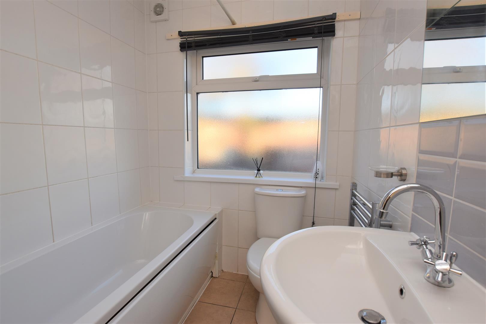 Concertina door into the bathroom. Window to the front aspect. White suite incorporating a low level flush WC, pedestal wash hand basin with mixer tap and panel bath with plumbed in shower. Heated towel radiator. Tiled walls, Vent.