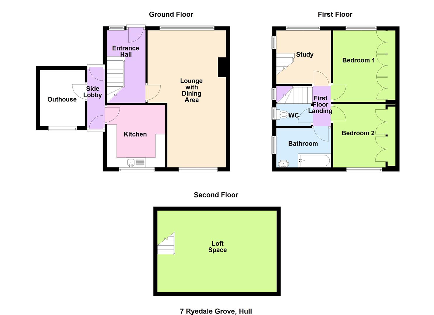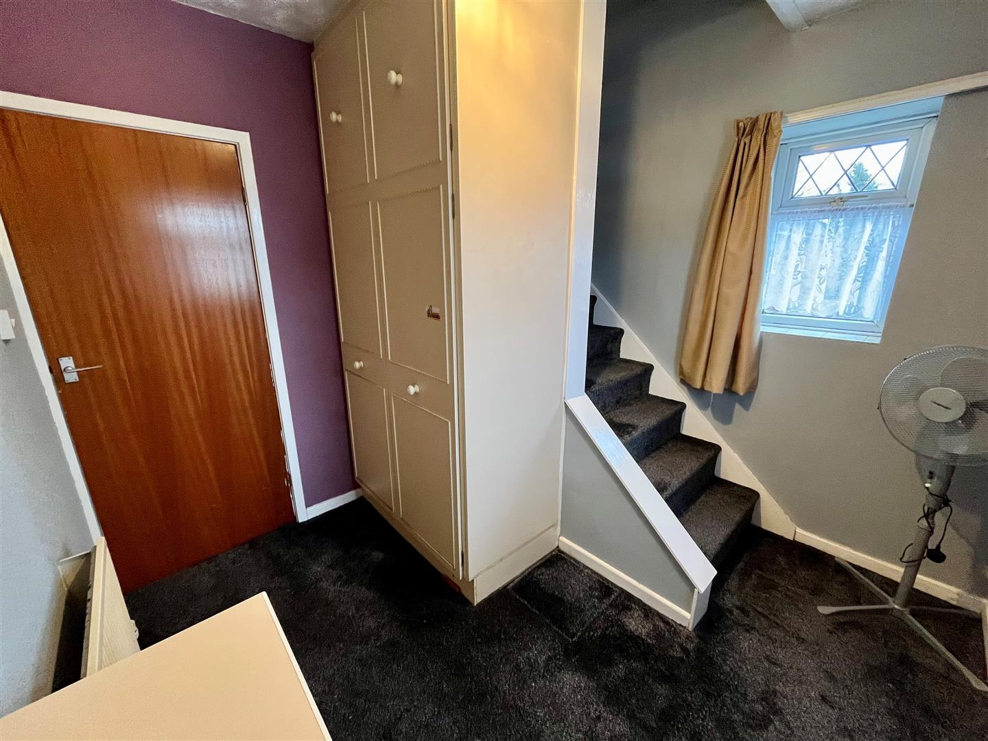 Main front entrance door provides access into the property. Stairs lead off to the first floor accommodation with under stairs cupboard.