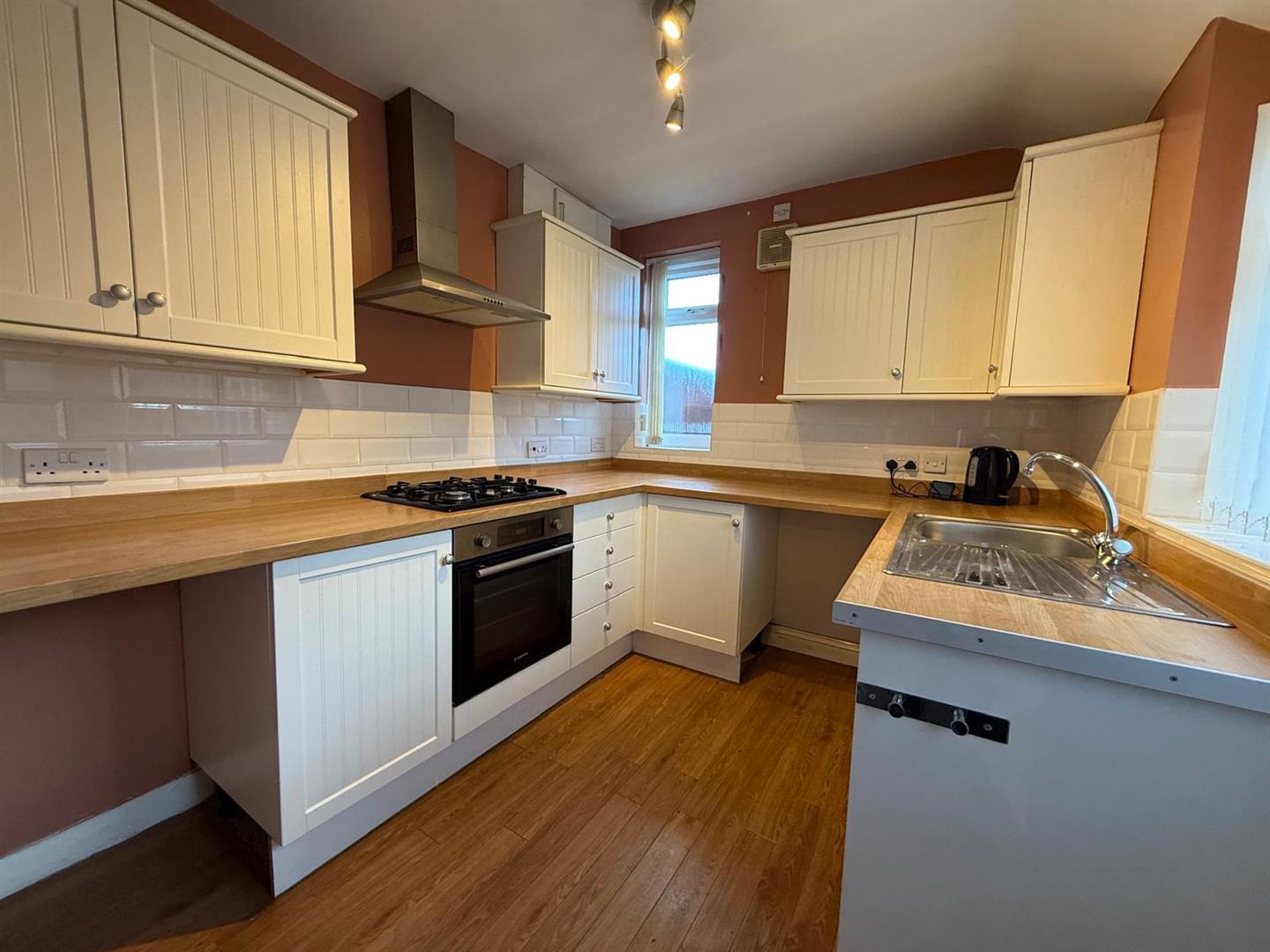 2.335m x 2.843m (7'7" x 9'3")Fitted with a range of base and wall units, work surfaces with single drainer sink unit. Appliances of electric oven and gas hob with space for freestanding appliances. Windows to the side and rear elevations with side entrance door.