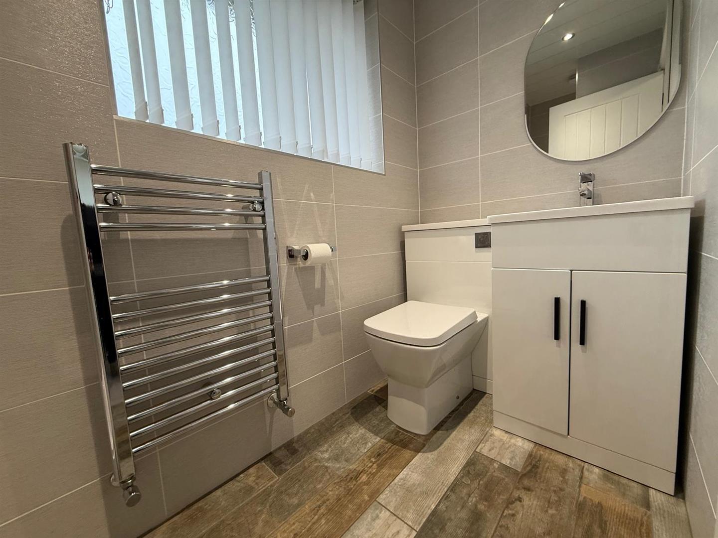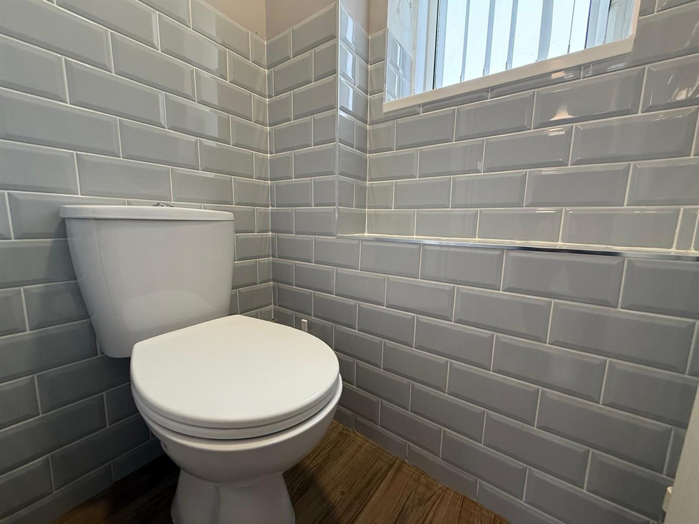 A tiled room offering a w.c. to the ground floor, frosted window to the rear garden. Radiator