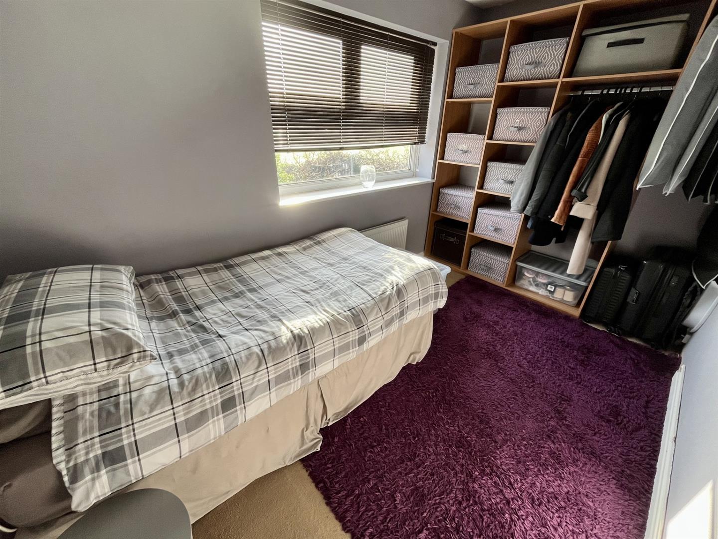Window to the rear elevation. Open fronted wardrobe unit. Radiator.