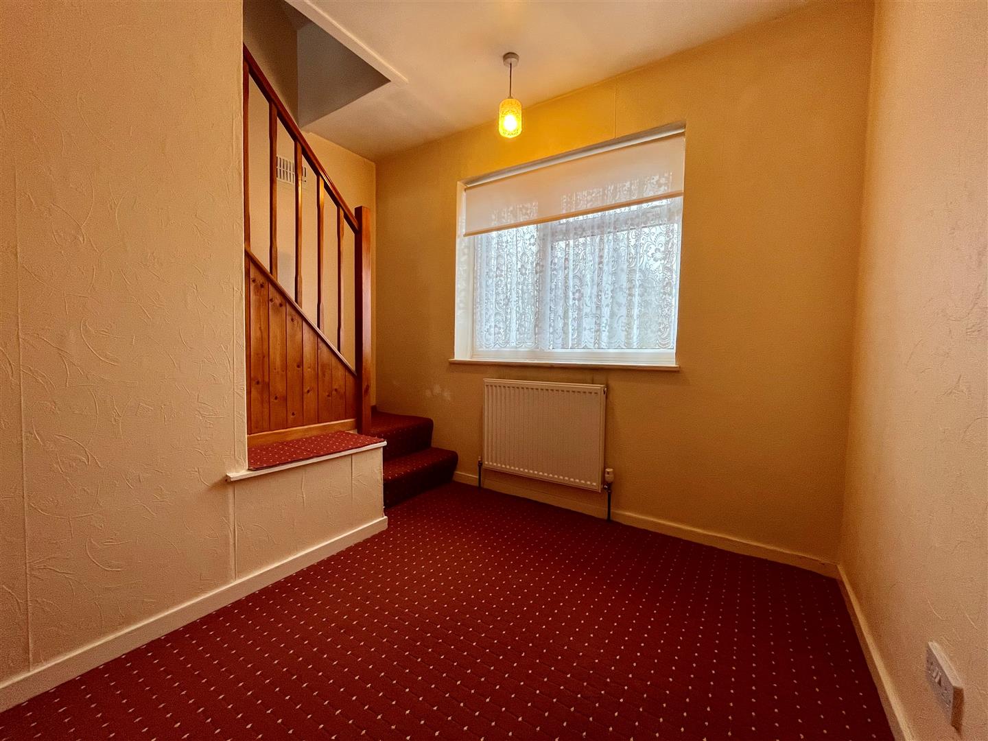 Main front entrance door provides access into the property. Stairs lead off to the first floor accommodation with under stairs cupboard. Radiator.