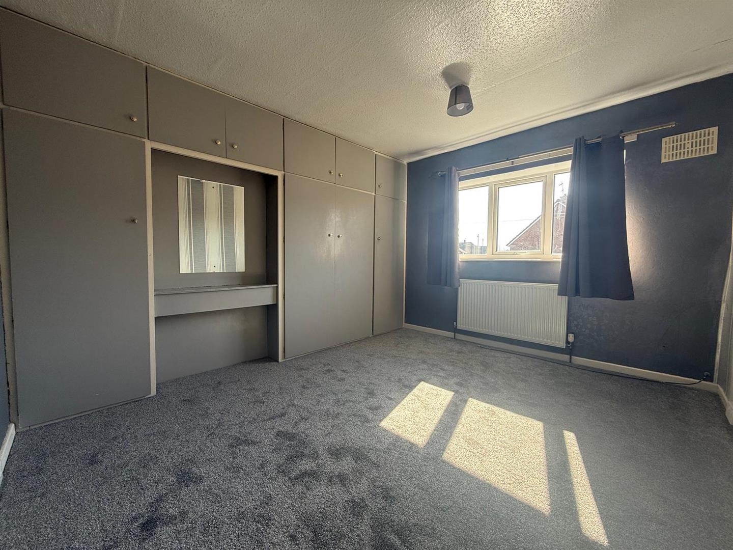 The third bedroom has a window to the rear, also with storage space behind a curtain. Radiator.