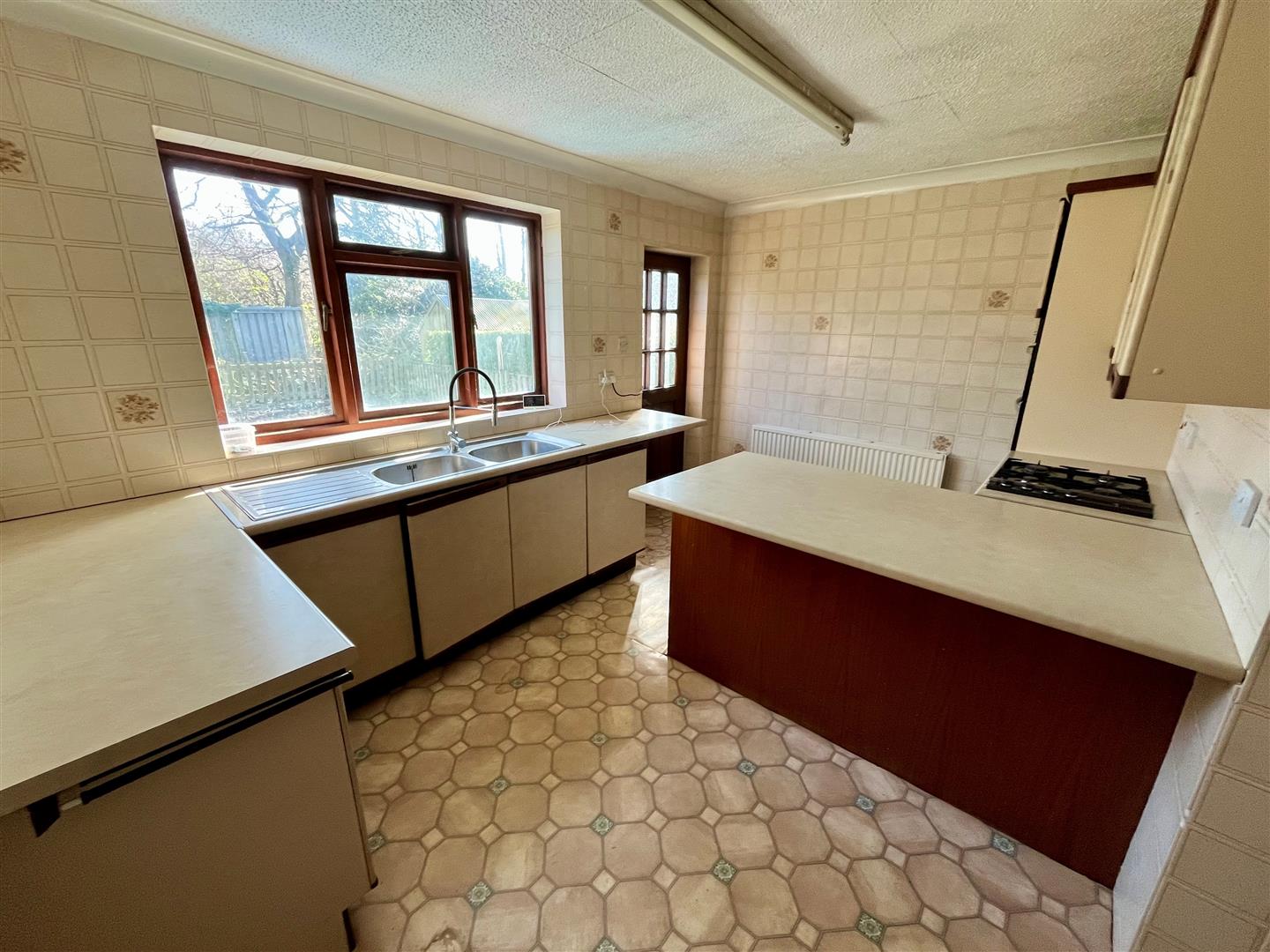 Containing a range of base and wall units, work surfaces with twin bowl sink unit. Oven and hob (not tested). Window to the rear elevation. Rear entrance door. Radiator.
