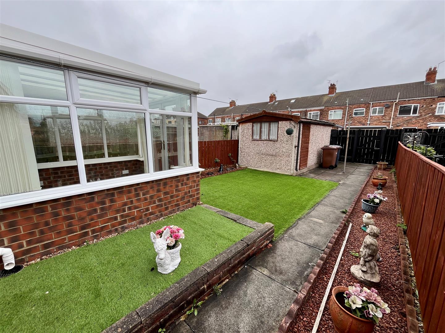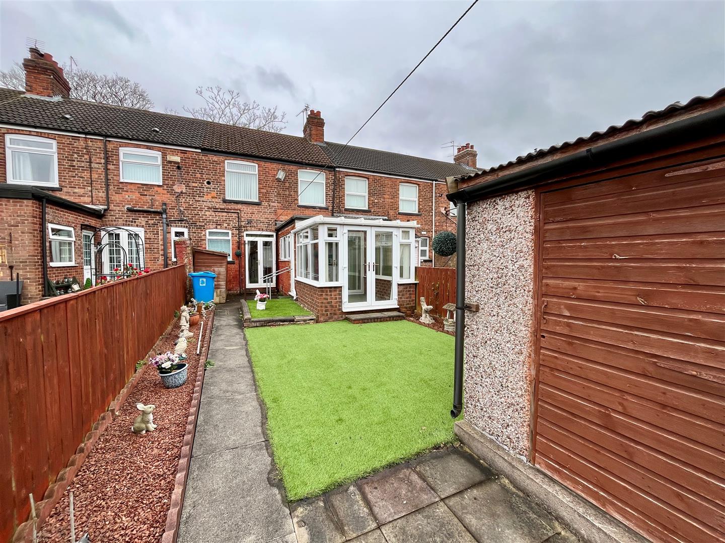 The property has a forecourt style garden to the front and low maintenance garden style area at the rear. There is access to the garage via the rear ten foot.