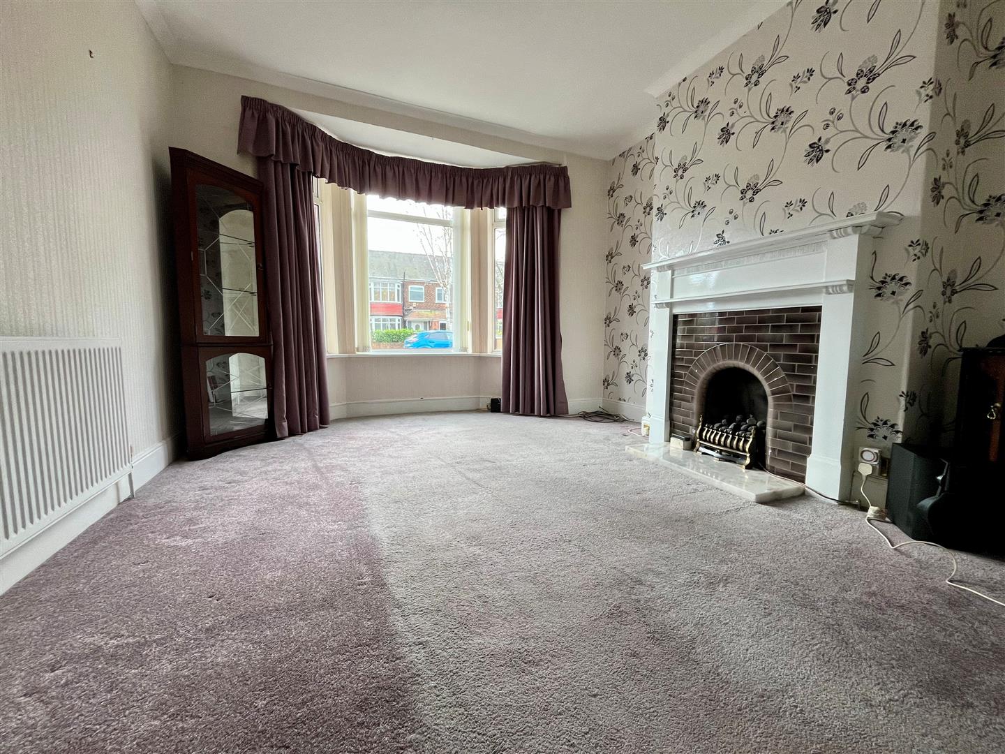 Bay window to the front elevation. Fire surround with coal effect gas fire. Radiator. Doors to: