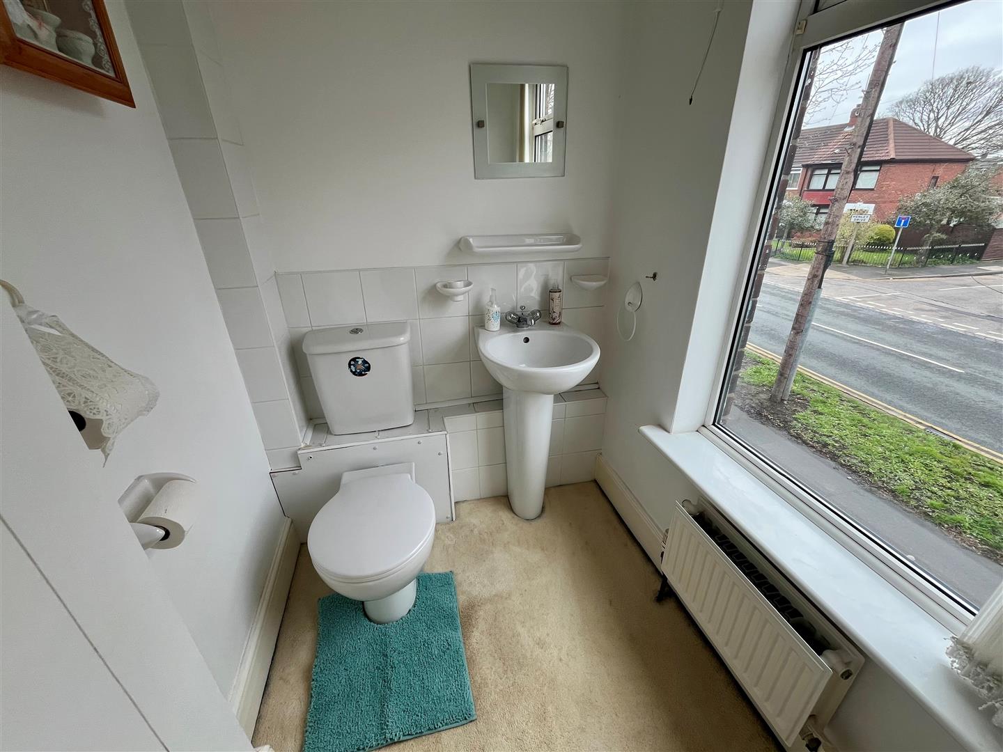 Suite of WC. Wash hand basin. Window to the front elevation. Radiator.