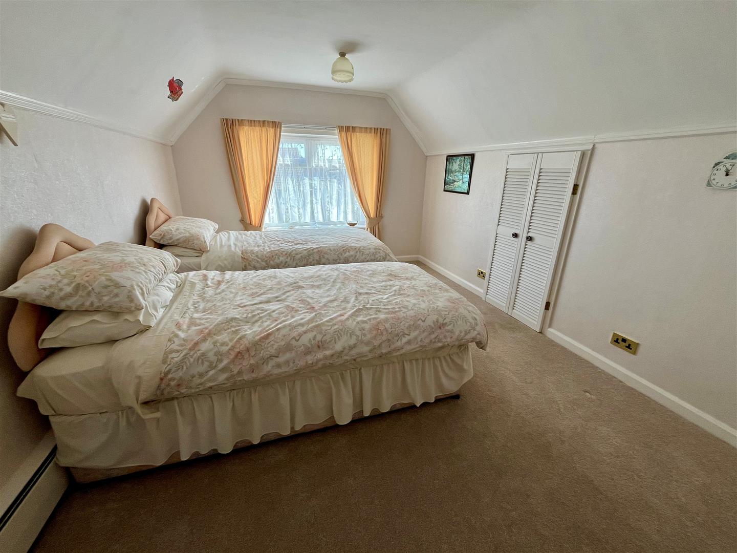 Window to the rear elevation. Wardrobes. Radiator. Sloping ceiling profiles.