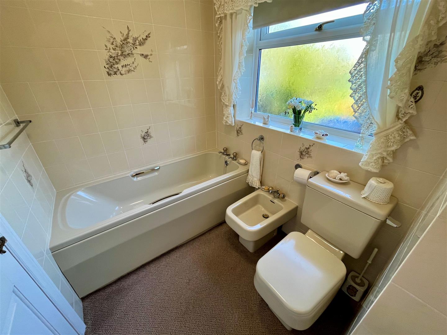 Fitted with a four piece suite of bath, bidet, WC and separate shower cubicle. Tiling to the walls. Window to the side elevation. Extractor fan. Radiator.