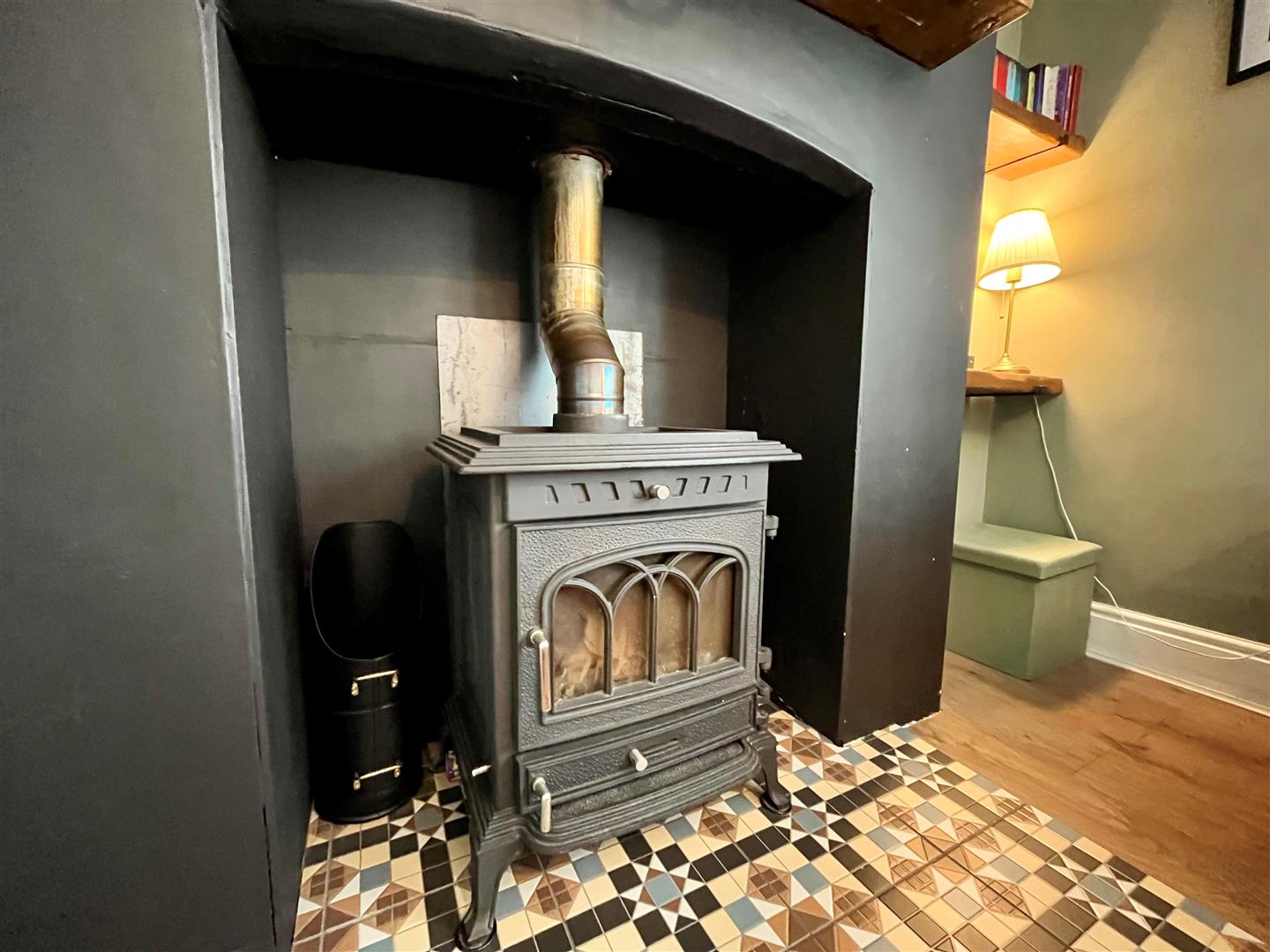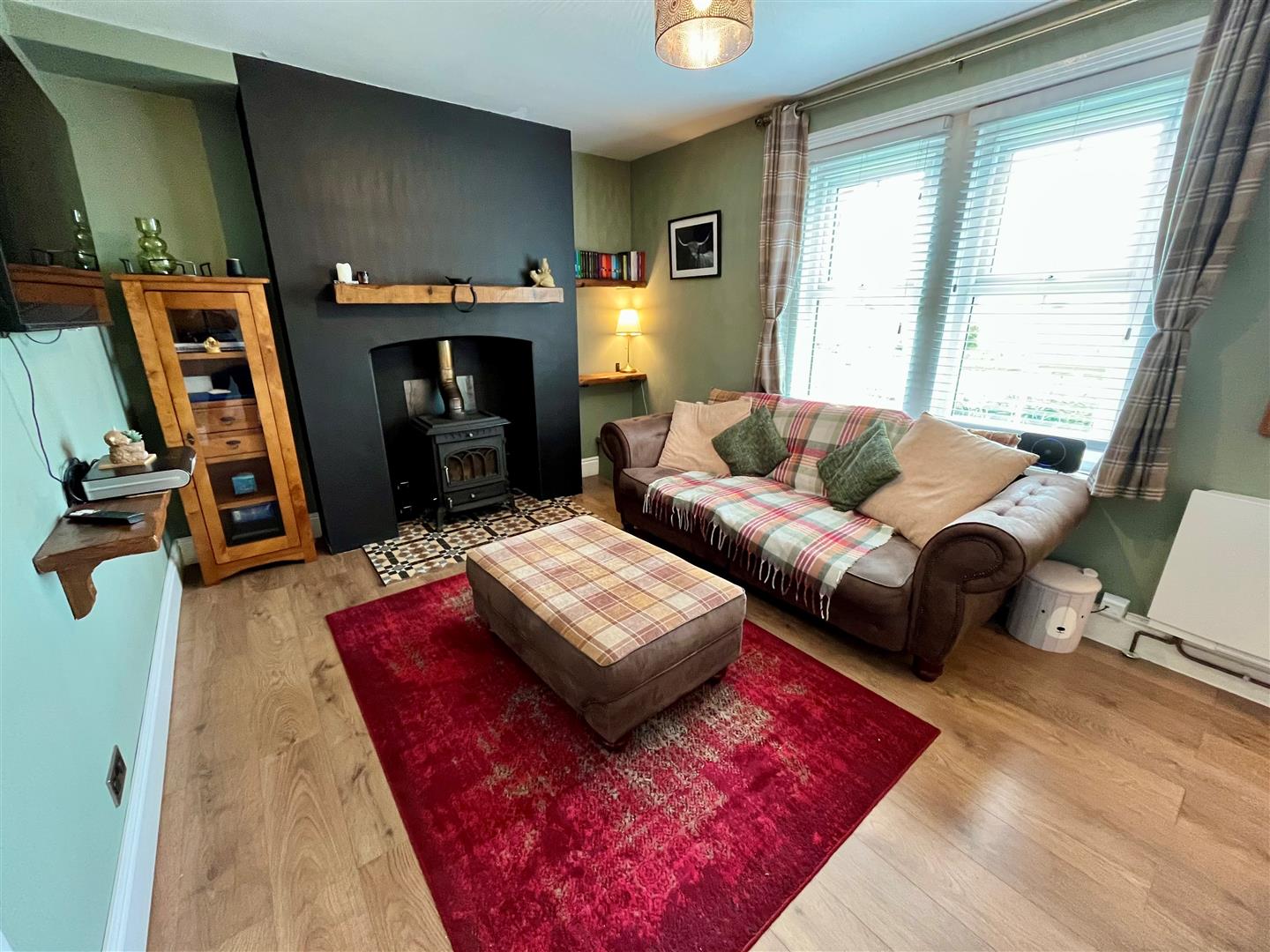 Window to the front elevation. Multi fuel room heater. Radiator. Stairs off to the first floor accommodation. Wooden effect flooring.