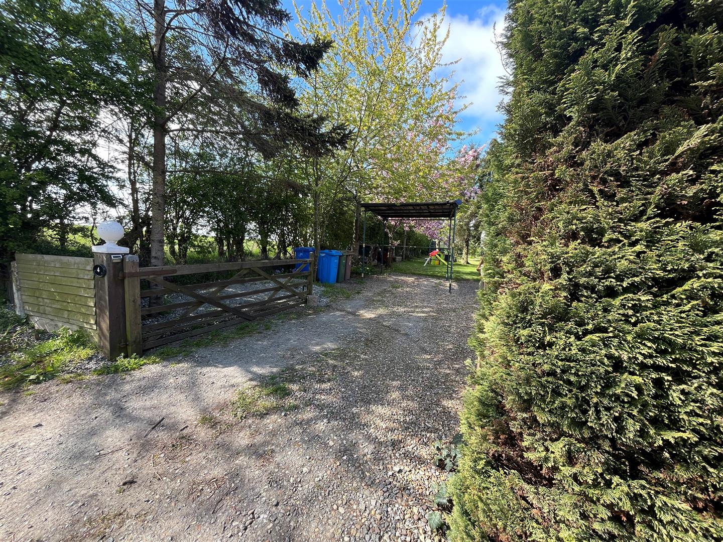 A real feature of this super property is undoubtably the location and fabulous garden plot. Standing in grounds of approx. 0.25 acre with extensive lawned areas, mature trees and hedges. There is off road parking for several vehicles with a temporary under cover car port structure in place. There are distant open views from the front and rear.